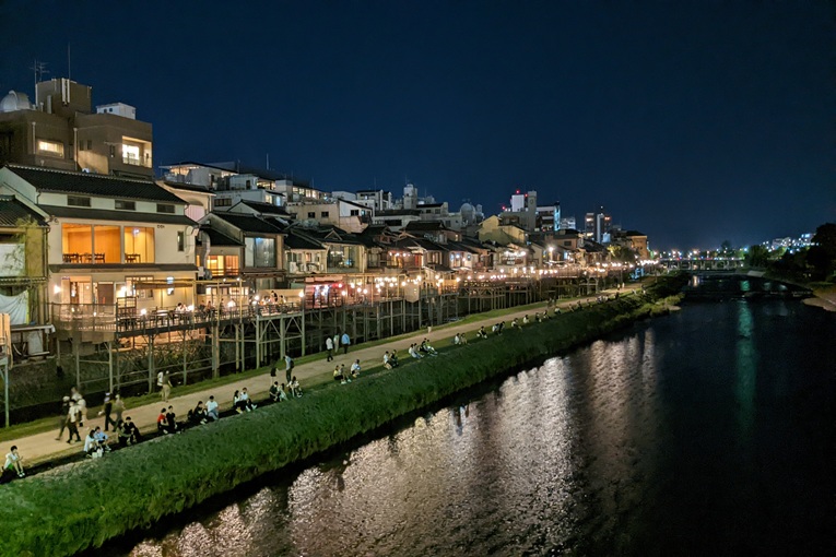 京都市内の中心を流れる鴨川沿いには、夏の期間川床がお目見えします。